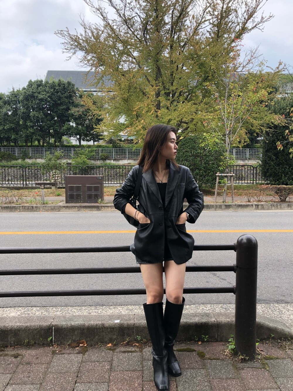 NANAKOのセットアップ「F/LEATHER TAILORED ジャケット」を使ったコーディネート