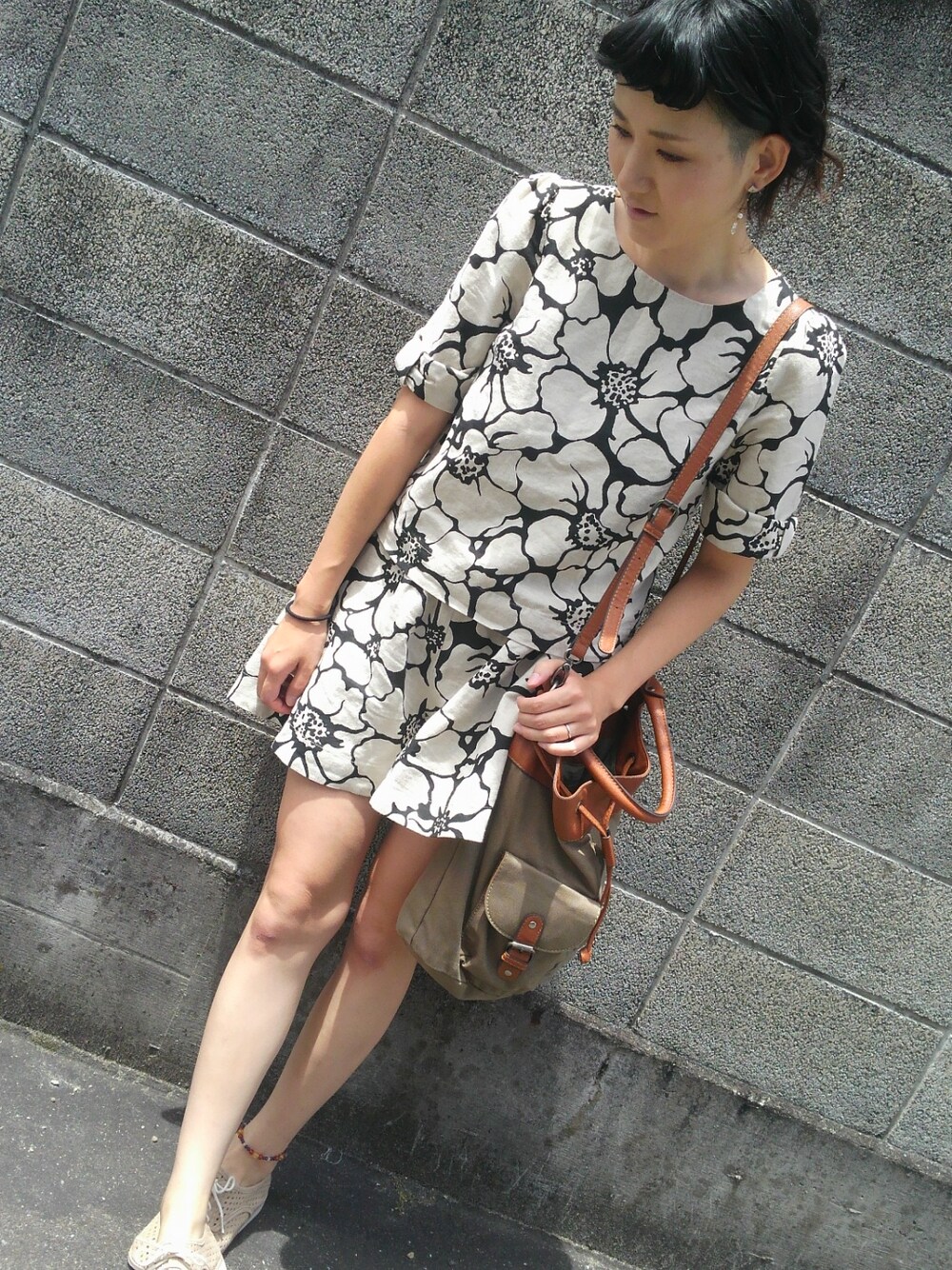 ベージュ×ブラックのコーディネート! アンクレットで差し色を♪