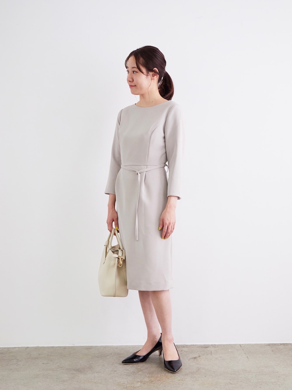 春に大活躍のきれいめワンピース。 一枚できちんと感があり、セレモニーからオフィス用まで幅広く使えます。