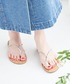 シルバーのフラットサンダルとペーパートートで合わせ、夏らしいコーディネートに。