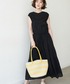ブラックのワンピースにラフィアハットを合わせて、リゾート風に。