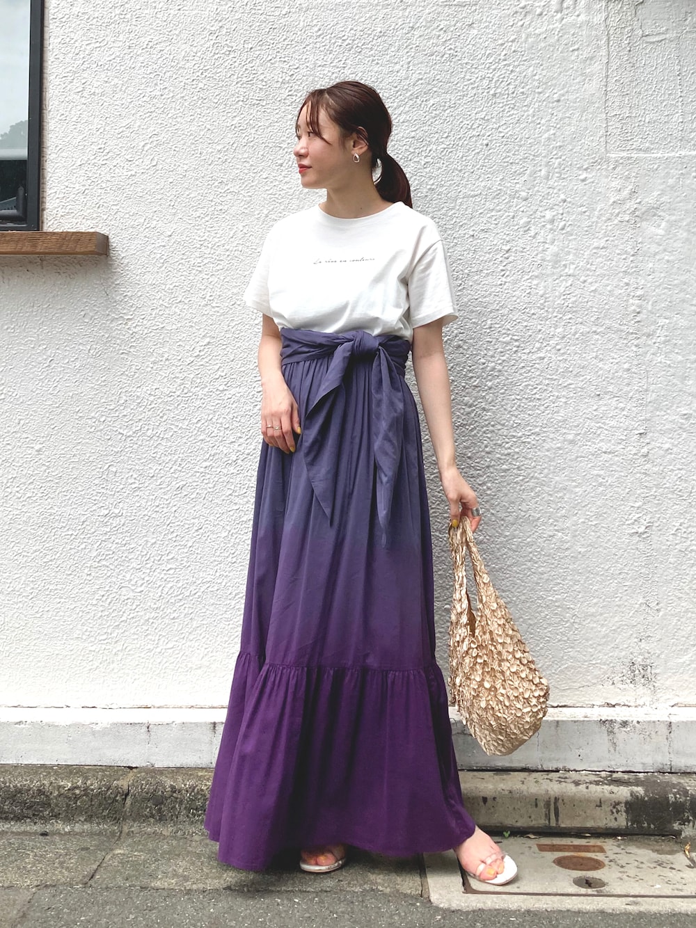 グラデーションスカートを主役にしたスタイリング◎