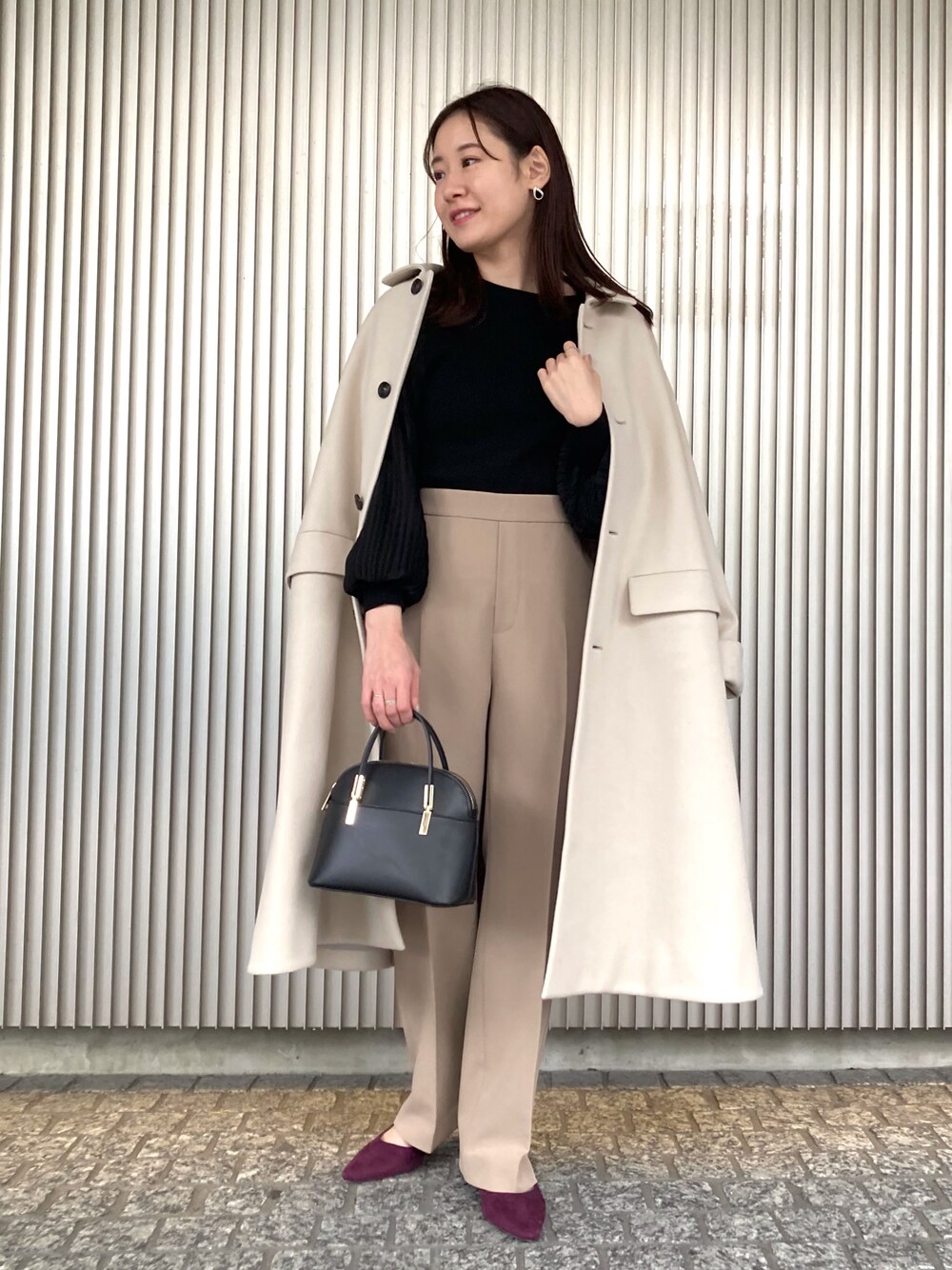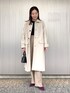 シンプルにまとめたコーディネート合うよう、ホワイトのコートできちんと感を加えました。 シンプルになりすぎないよう、パンプスで色味を加えたのがポイントです。