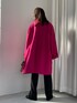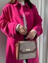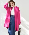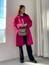 目を引くピンクコートのスタイリングです! トップスとパンツはシンプルにしたことで、コートを際立てています。 ブラウンのバッグは、はっきりとしたカラーコーデにもぴったり。