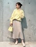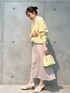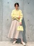 ニットと、バッグをイエローで合わせたコーディネートです! ニットにレースインナーをレイヤードさせたのが、ポイント◎