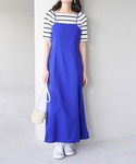 ブルーでまとめたコーディネートです! シューズとバッグはシンプルなホワイトにしたのがポイント◎