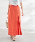 女性らしいオレンジスカートのコーデに、ミリタリーベストを合わせてカジュアルに。 オレンジとベージュは、相性抜群でおすすめです。