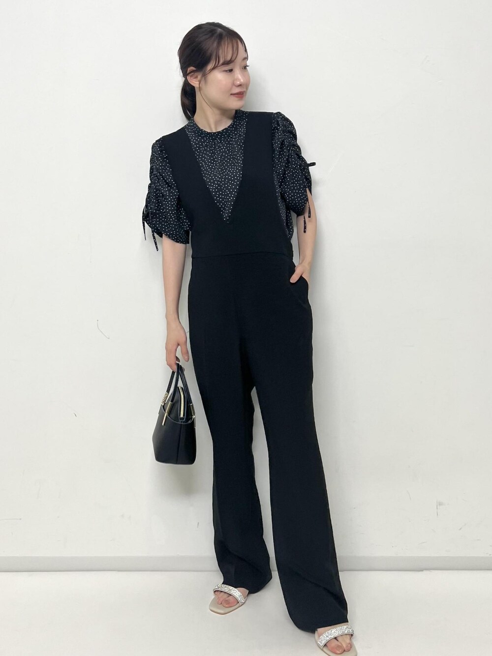 すっきり見えするオールインワンで、可愛らしいコーディネートに。 低身長さんはヒール合わせがおすすめです。