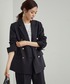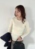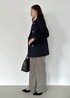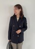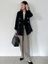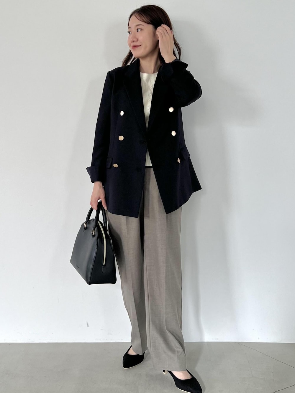 金ボタンジャケットとブラウンのパンツでキレイめお仕事コーデに。 インナーもリブニットにしたので、ジャケットなしでもサマになります。