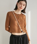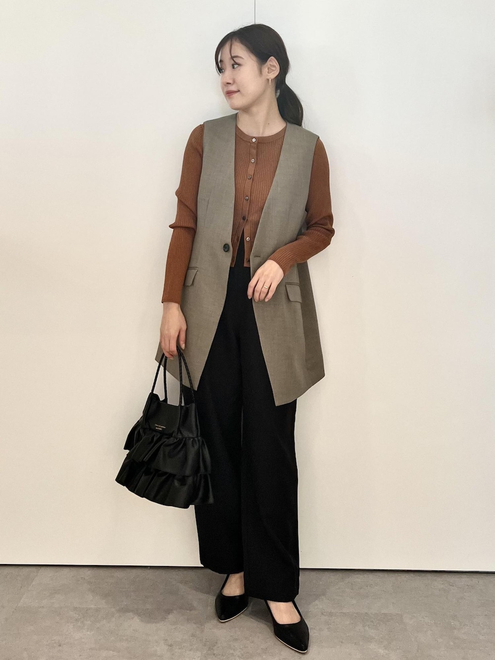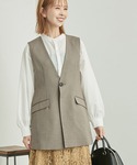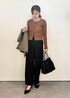 カーディガンに、ベストをレイヤードしました! 短丈のカーディガンなのでバランス良いスタイリングに!