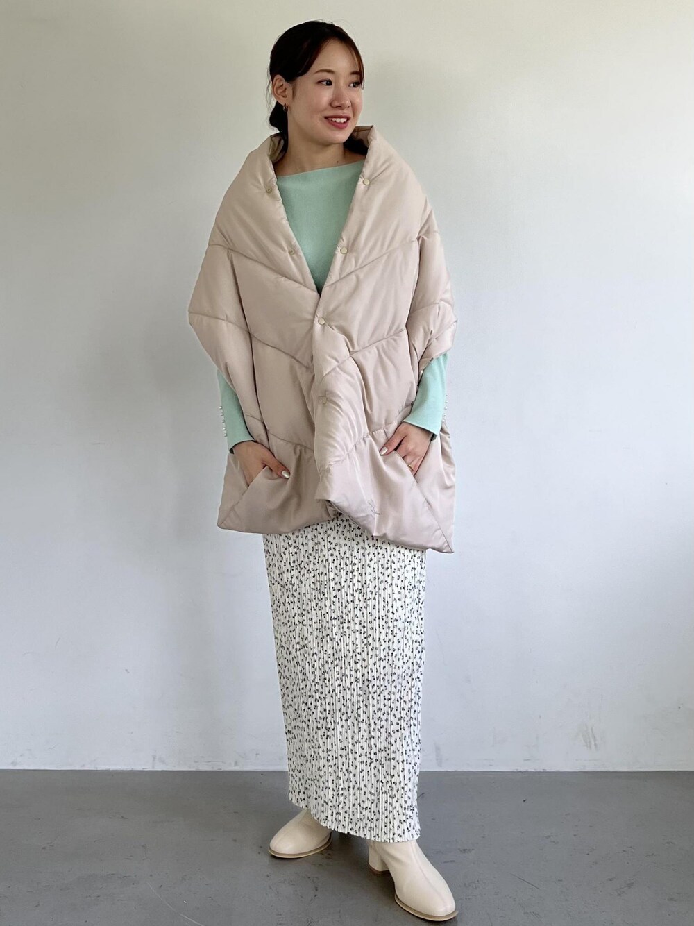 キルティングストールは秋の羽織にぴったり。 女性らしいコーデにも合います。