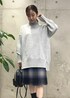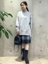 ゆるっとしたニットに、ミニスカートを合わせて、カジュアルコーデに。 ちょうど良い肌見せも◎