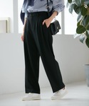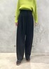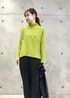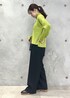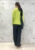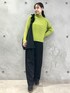 グリーンのニットが映えるように、他のアイテムはシンプルに。 ショート丈のニットなので、ワイドパンツともバランス良く着られます。