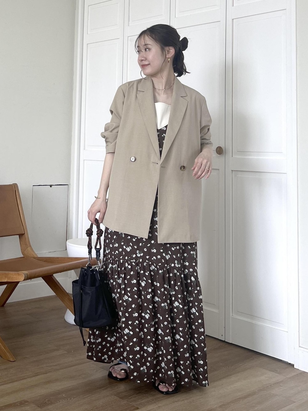 キャミワンピにデニムを合わせてカジュアルに着こなしました。 リネンライクのジャケットは夏の羽織にぴったり◎