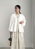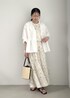 花柄が大人フェミニンな印象にしてくれるワンピースです。 ペプラムのブルゾンでウエストマークしつつ、フェミニンに仕上げました◎