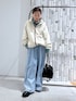新作のフリースが可愛い♡🥹 アウターにもトップスにもおすすめです✨ ◉tops 柔らかい薄めのお素材のフリースブルゾン♡ 裾にドロスト付きなので絞ってすっきり 着るのがおすすめです! 私の身長でおしりも隠してくれたので 体型カバーもできて◎✨ ◉bottoms テンセルが入った柔らかいお素材の デニムパンツです!幅はかなりワイドですが 落ち感がしっかりあるのでキレイに履けました☺︎ 1つ折って穿いたらさらにすっきり感が 出たのでおすすめデニム👖💕 うちに紐がついてるのでウエスト調整して 穿けるのが嬉しい☺️ ◉bag ショルダーバックでも使える、2wayアイテムです! 見た目以上に軽くてお荷物がたくさん入る デイリー使いしやすいお鞄です🧳♡ チェーンの部分もプラスチックなので お洋服に引っかからないのが◎🥹 ◉shoes 踵のベルト付きの2wayサボです✨ 横幅は少しゆったりめなサイズ感なので 締め付け感なく履いて頂けます☺️ 約6cmのヒールなのでスタイルアップも◎