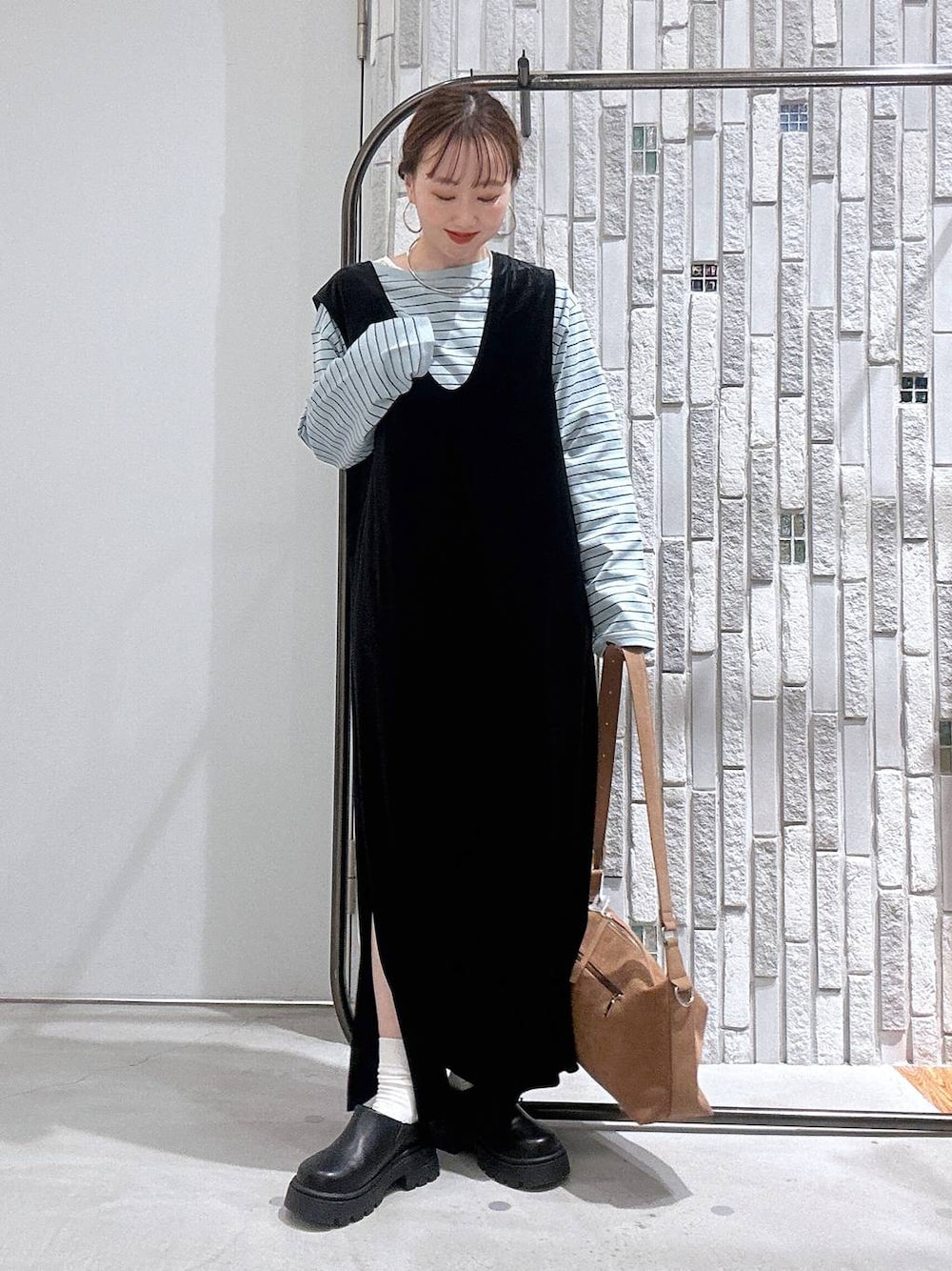 新作の春コーデ☘️♡ ◉tops サイズ感はゆったりとしておりますが、 ジャンスカやサロペのインナーにも着れる ごわごわしない薄い生地感です! お袖も少しフレアなので1枚で着ても おしゃれ感のでるボーダーロンTです💕 ◉onepiece ベロア生地ですがストレッチが効いてるので 柔らかくて着やすいワンピース👗! 片側だけスリットが深く入ってるので、 足捌きもよく動きやすいです✨ 153cmで足首が隠れるくらいの丈感なので 低身長の方にもおすすめなワンピースです☺️ ◉bag 使いやすさ抜群のショルダーバッグ👜♡ 横幅もしっかりあるので長財布や 500mlのペットボトルも楽々収納できます☺️ カジュアルすぎないデザインが◎! キーホルダーをつけれるリング付きです💕 ◉shoes 踵が少しあるので足が安定して履ける厚底サボ✨ ヒールは約5cmあるので長めのボトムスにも すっきり合わせて頂けます♡ 重量感のない軽い履き心地です!