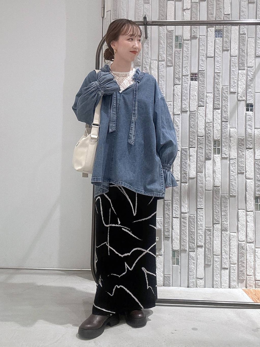 新作コーデ♡🧸 ◉tops 薄く柔らかい生地感のデニムブラウス✨ お袖がキャンディースリーブになってるので 1枚でおしゃれ感の出るトップスです☺️ おしりも隠してくれるので体型カバーもできて◎ ◉bottoms LEPSIMの頼れるニットシリーズのニットスカート♡ 153cmで足首が隠れるくらいの丈感です! めちゃくちゃすっきり見えするシルエットで 腰回りはぴたっとするのでオーバーサイズな トップス合わせがおすすめです✨ 毛玉ができにくく、お洗濯できるのが嬉しい☺️ ◉bag 使いやすさ抜群のショルダーバッグ👜♡ 横幅もしっかりあるので長財布や 500mlのペットボトルも楽々収納できます☺️ カジュアルすぎないデザインが◎! キーホルダーをつけれるリング付きです💕 ◉shoes 踵のベルト付きの2wayサボです✨ 横幅は少しゆったりめなサイズ感なので 締め付け感なく履いて頂けます☺️ 約6cmのヒールなのでスタイルアップも◎