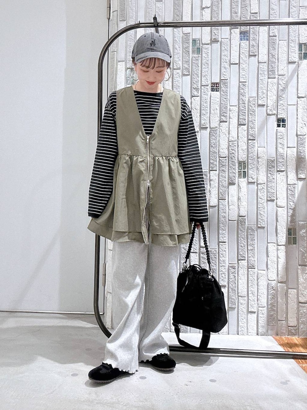 新作ボーダーコーデ🩵💙 ◉vest 着丈が選べるWジップのベストです✨ ★F(通常丈66)★FT(長め丈73) 私はFTを着用しております! 153cmでおしりがすっぽり隠れるくらいです☺️ 1枚着るだけでおしゃれ感が増すので これからの時期に活躍しそうです💕 ◉bottoms 裾のメロウデザインがワンポイントの 楽ちんパンツ✨ 153cmで少し丈感が長めだったので ウエストで折って穿くのがおすすめです♪ 柔らかい生地感で季節問わず穿けるのが嬉しい☺️ ◉bag ハンド、ショルダー、網ハンドル マチがしっかりあるのでお荷物がたくさん 入るのが嬉しいポイントです☺️ 撥水加工なので雨の日でも安心✨ ◉shoes かなり軽量なメッシュのお素材も入った おしゃれスニーカー👟 紐はゴムになってるので調整しやすいのが◎! キレイめにも履けるので幅広いスタイリングに お使いいただけます☺️