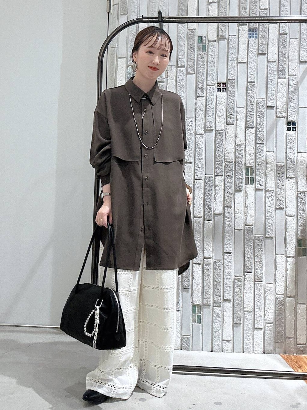 新作シャツコーデ☺️🤎 ◉tops 大人気のマルチメリットシリーズの シャツチュニック✨ 落ち感がしっかりあるので めちゃくちゃすっきり見えするのが嬉しい☺️ 接触冷感・吸水速乾・UVカット機能付き◎ ◉bottoms レースがワンポイントのイージーパンツ🩳 153cmでハイウエストで穿いております! ウエストに紐がついてるので調整可能です◎ トップスが無地でシンプルなものでも 1枚でおしゃれ見えが叶うボトムスです😊 ◉bag お荷物がしっかり入る大きさのボストンバッグ👜 軽くて持ち手が長めになってるので 肩掛けもしやすいです✨ 少しマットな質感なので高見え上品な スタイリングにもマッチします◎ ◉shoes 履いたらびっくりするくらいのクッションが ふかふかなUカットパンプス🥿♡ 約1cmのヒールがあるのでぺたんこすぎず 履けるのが嬉しい☺️ 生地感も柔らかいので普段にもお仕事にも とてもおすすめです!