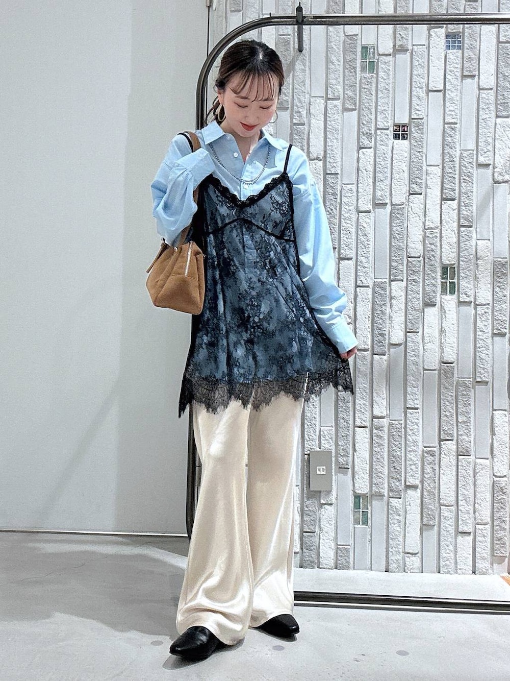 新作のレースキャミがかわいい🥹🧡 今期1枚は持っておきたいアイテム♪ ◉tops 袖口の刺繍がワンポイントのオーバーシャツ👔 インナーに着たり、1枚で着れたり 羽織にもなるので1枚あれば着回し力抜群アイテム! おしりも隠してくれるので 体型カバーにも◎! ◉camisole 細紐がかわいいレースキャミ❤︎ 長さ調整できるのでお好みの長さで 着れるのが嬉しいです☺️ シャツでもゴワゴワせずに着れたので 身幅もしっかりあって嬉しい🤍 ◉bottoms かなり細見えするサテンパンツ✨ 153cmで少し長かったので、 ウエストで1回折るとちょうど良かったです! 股上は深めなのでお腹も楽ちん💕 広がりすぎてないシルエットが◎ ◉bag トレンドのボストンバック♡ ハンドルの長さが調整できるので お好きな長さで持って頂けます☺️ マチもしっかりあるので収納力も◎💕 見た目以上に軽いのが魅力的です✨ ◉shoes 履いたらびっくりするくらいのクッションが ふかふかなUカットパンプス🥿♡ 約1cmのヒールがあるのでぺたんこすぎず 履けるのが嬉しい☺️ 生地感も柔らかいので普段にもお仕事にも とてもおすすめです!
