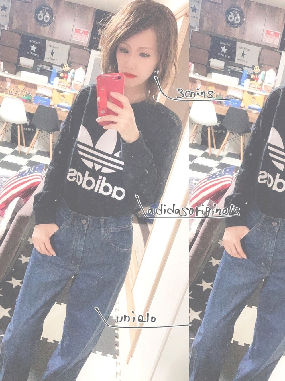 アディダスオリジナルスのトレーナーは3本ラインがレースで透けてるやつ💁♀️