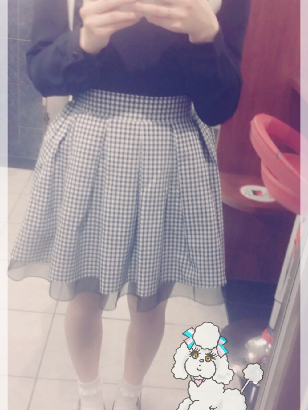珍しく黒コーデ(「・ω・)「 ギンガムチェック × オーガンジー 最強の組み合わせだと思う🙈💓💓