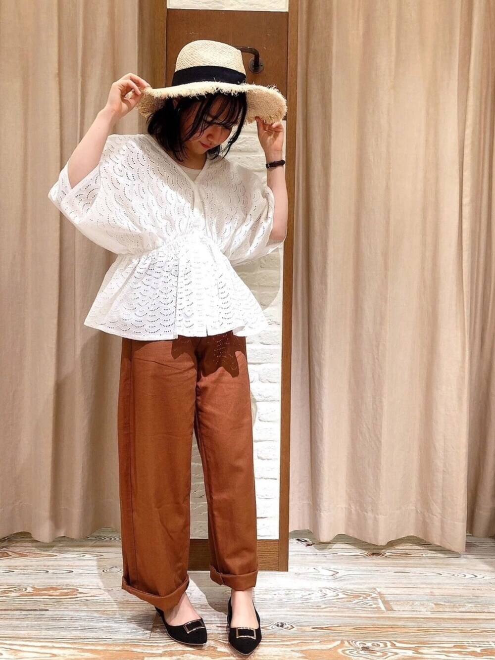 いいね、お気に入り、フォローありがとうございます🌷 本日はLugnoncureのコーディネートです❁︎ こちらのブラウスは後ろの紐がリボン結び出来てさりげなくかわいいです୨୧⑅*. パンツと合わせて甘すぎず着てあげるのがオススメ○♪.°