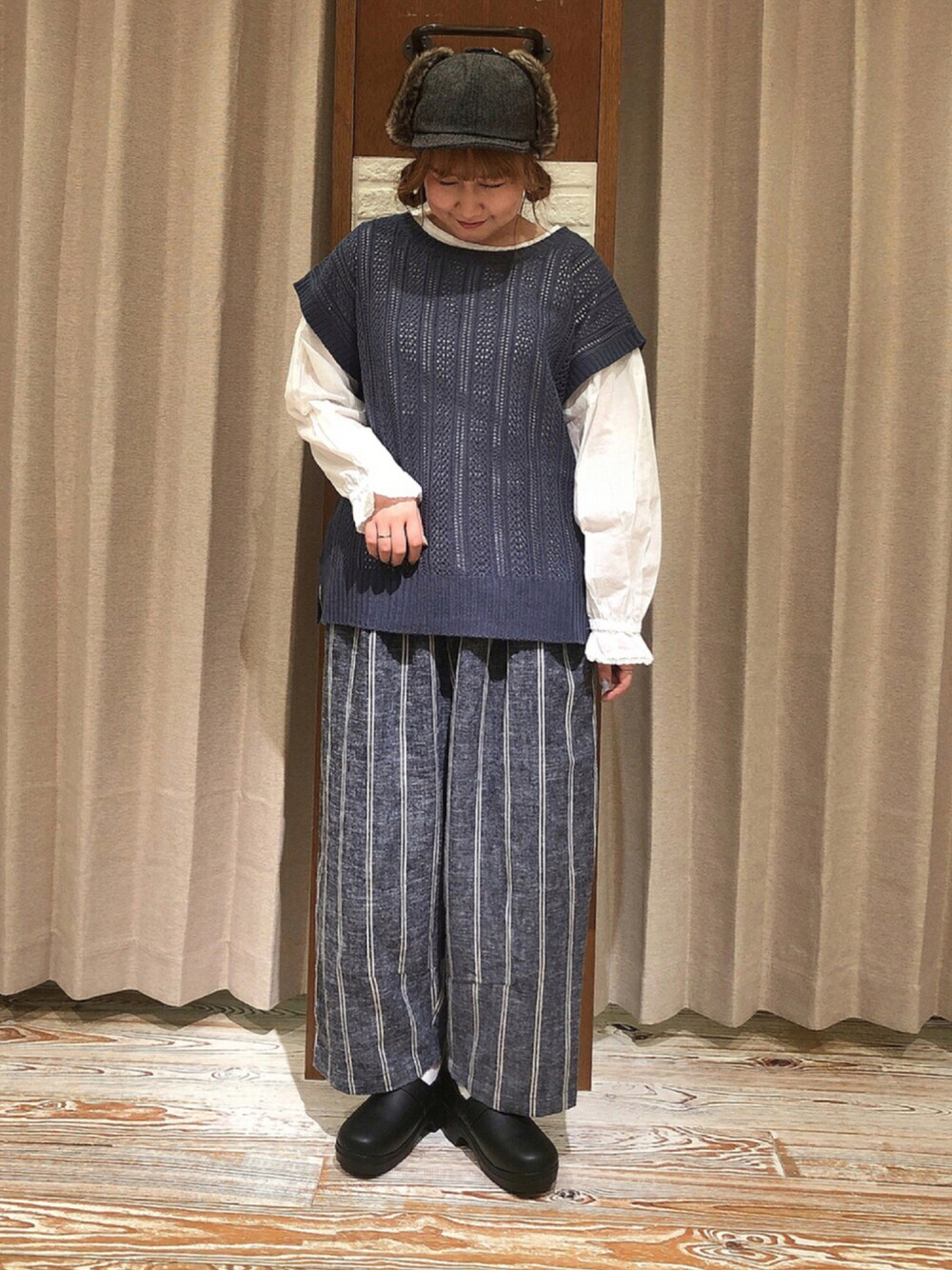 ご覧いただきありがとうございます🌷 ブラウスとベストのセットアイテムは 秋大活躍するおすすめアイテム💭 パンツもブルー系で統一して 少し大人っぽさもあるコーディネートに💓 フライトキャップを被るだけで 一気にオシャレみえしますよ🥳 ドーナツヘアーでほんの少し 可愛らしさをプラス🍩 hair style👧からご覧いただけます!