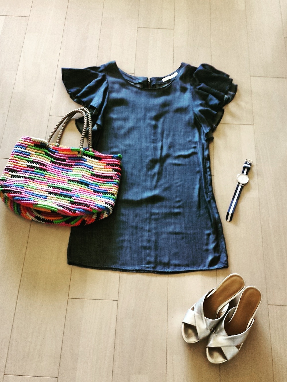 暑くて珍しくワンピースに……足元スニーカーにしようか迷ったけど、暑いからサンダルに。サンダルはナインウエスト