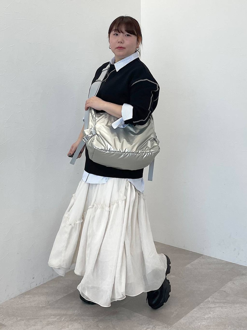 上下どちらもお気に入りの イチオシスタイリングで着てみました🥰 ニットはシンプルだけど 1枚でおしゃれに着れちゃうスウェットニット! ステッチの色がベースカラーによって 違うのもめちゃくちゃ可愛い☺️💓 スカートはもうすぐ入荷してくる イレヘムティアードスカート! これはフワっとしててほんとにほんとに可愛い! 箔プリント加工なので少しキラっとしてるのも 推しポイント🫶🏻✨ ウエストゴムなのでラクに履いて頂けます☺️