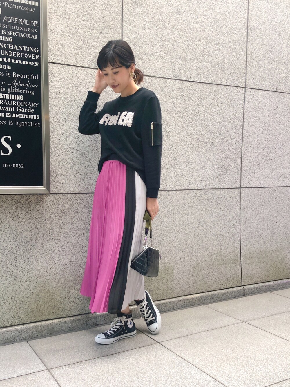 スエットを大人っぽく着まわして! Frei EAの新作スエットは、後ろがキルティングで切り替えてあるから子供見えしないアイテム。 トレンドのプリーツスカートであわせて! ビビットカラーのカラーブロックは1枚で主役になれて履きやすいです♪