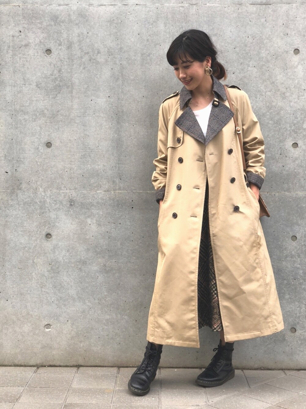 kyon(LOVELESS 本社)のトレンチコート「【LOVELESS】チェックコンビバルーントレンチコート」を使ったコーディネート
