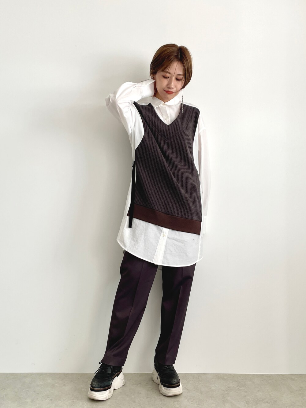 kyon(LOVELESS 本社)のシャツ/ブラウス「ベストトロンプルイユオーバーシャツ」を使ったコーディネート