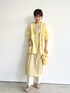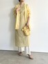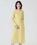 春のカラーコーデ! 人気のポイントスレッドニットカーディガンはキレイめなワンピースと合わせて大人カジュアルな雰囲気でも着まわせます。