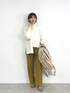 この春はオーバーサイズのトレンチコートがオススメ! ライトベージュのラペルがレイヤーになっているのも、このコートの特徴。インナーにイエローのシアーとパンツを合わせてカラーコーデで春らしさをプラスしました♪