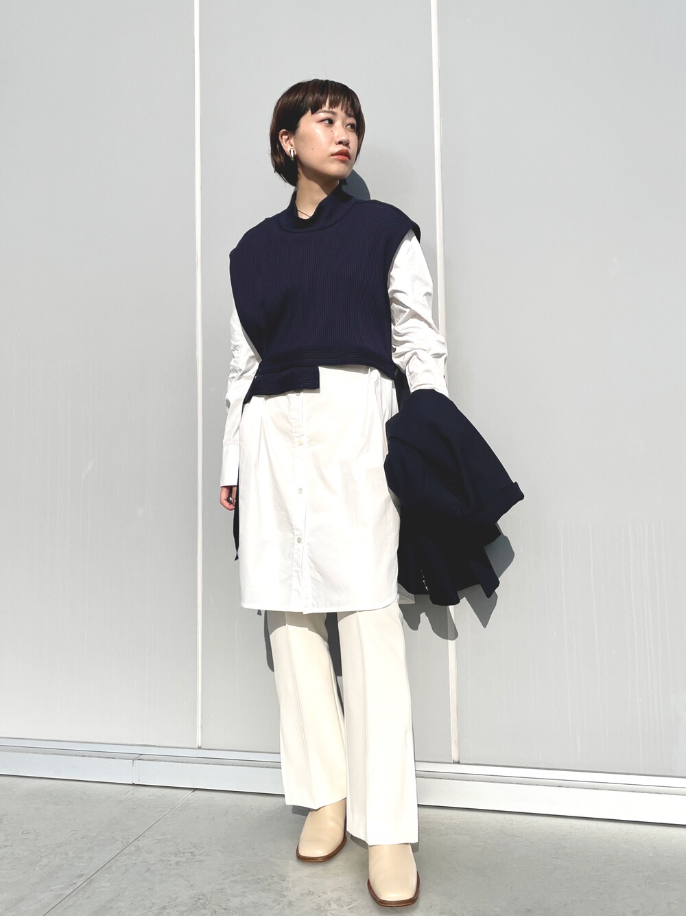kyon(LOVELESS 本社)のシャツ/ブラウス「リブベストドッキング ロングシャツ」を使ったコーディネート