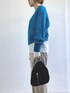 サックスブルーの鮮やかなカラーニットをメインにした、冬のリラックスコーデ! カットソー素材のスリットパンツはご近所へのお出かけにもさりげないシャレ感をプラスしてくれます♪