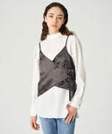 モデル/石井亜美さんコラボアイテムであるツイードナポレオンジャケット! パイピングとフロントにほどこされたフェイクレザー使いがアクセントになってくれます。 春らしいカラーパンツとの合わせで、春の通勤スタイルの完成!