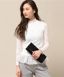 春らしいレースをクラッシュデニムでカジュアルスタイルに!トレンチコートは裏地もチェックな所がポイント