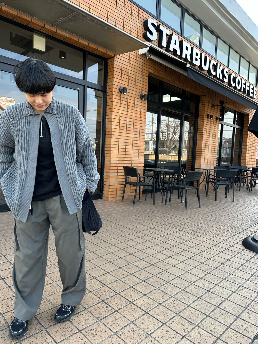 . Instagram→@1998__0720 . . カーディガンのキレイめと、 カーゴパンツのカジュアルさが いい感じに中和してくれてる👌 . . 今日はスタバ納めでした👏