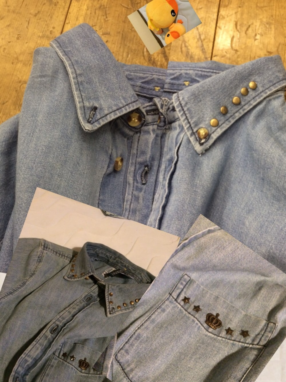 左上のシンプルなシャツに、東急ハンズで買ったスタッズを使ってオリジナルにアレンジ。。 何気ない日常に工夫を