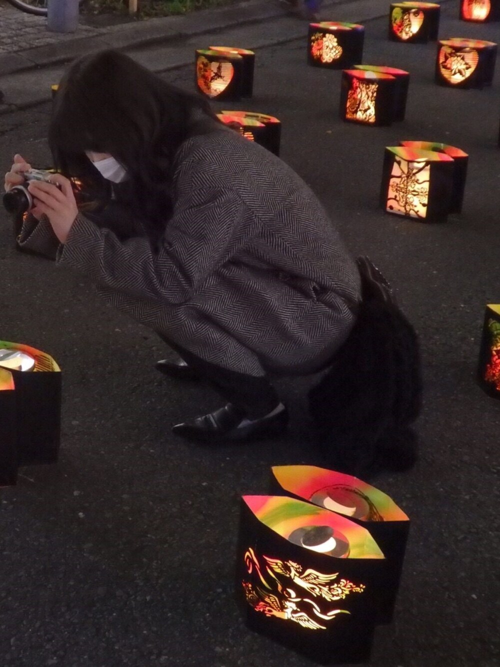 色彩低めコーデで黒い黒い。 灯篭とのコントラストが良い感じ(笑) 昨日は暖かい夜で過ごしやすかったです。