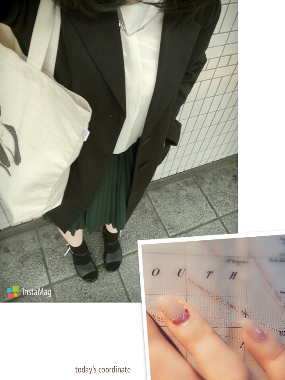 お久しぶりです 暖かくなってきましたね 今日は渋谷まで kainくんとらいるくんのツーマンライブへ 行ってきます いつもとはちがう緑のプリーツスカート ネイルには桜 わかりにくいソックス×サンダル