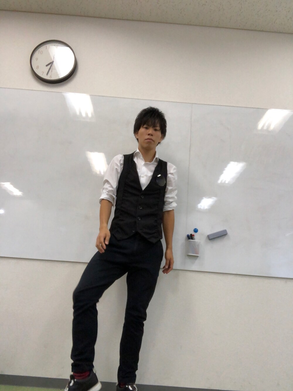 ブラック系のベスト、ブラック系のその他パンツ、ホワイト系のシャツ/ブラウスを着用したメンズの夏コーディネートの1枚目の写真