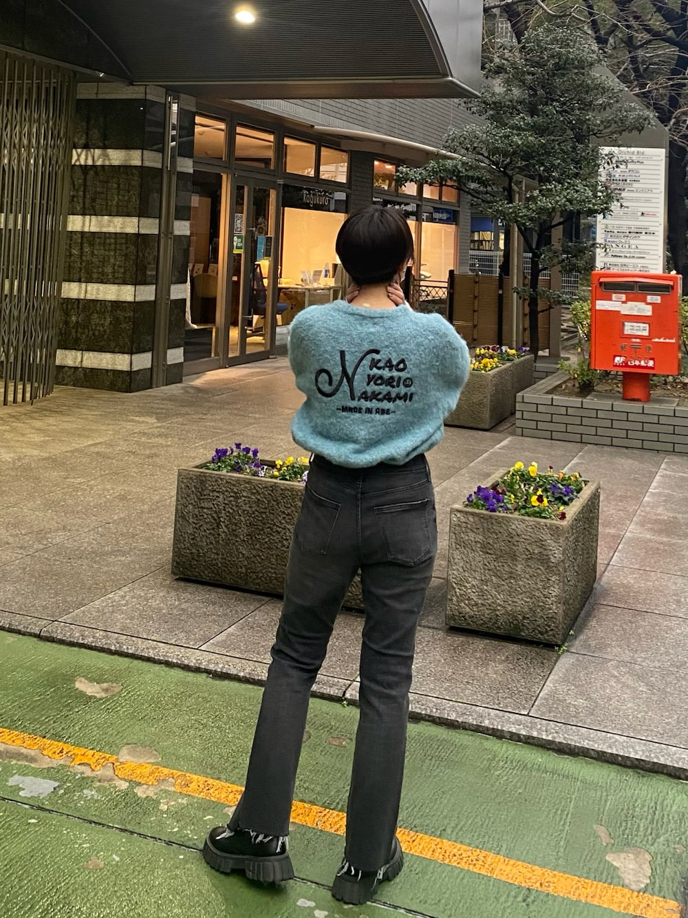 ロゴニット×デニムパンツ instagram→02na__1