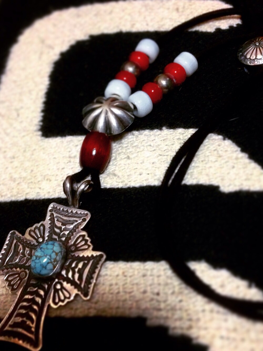 先日ゲイリー・リーブスのネックレストップを買いました。 それを使ってネックレス作りました。 ビーズには一部アンティークのホワイトハーツを。 いい感じ。