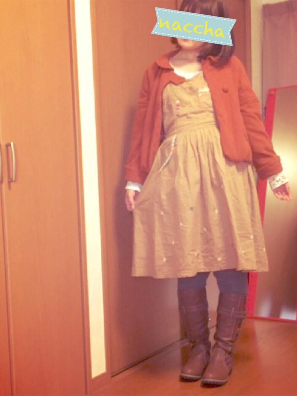 今日もオレンジ! かぼちゃ色 ハロウィン仕様に子供服みたいな刺繍と柄ロンTを合わせました。 大人子供関係なくハロウィンは楽しむべきだ! 妊娠後期は足のむくみがひどくて ブーツがキツイ。産後スタイルアップ頑張ろう