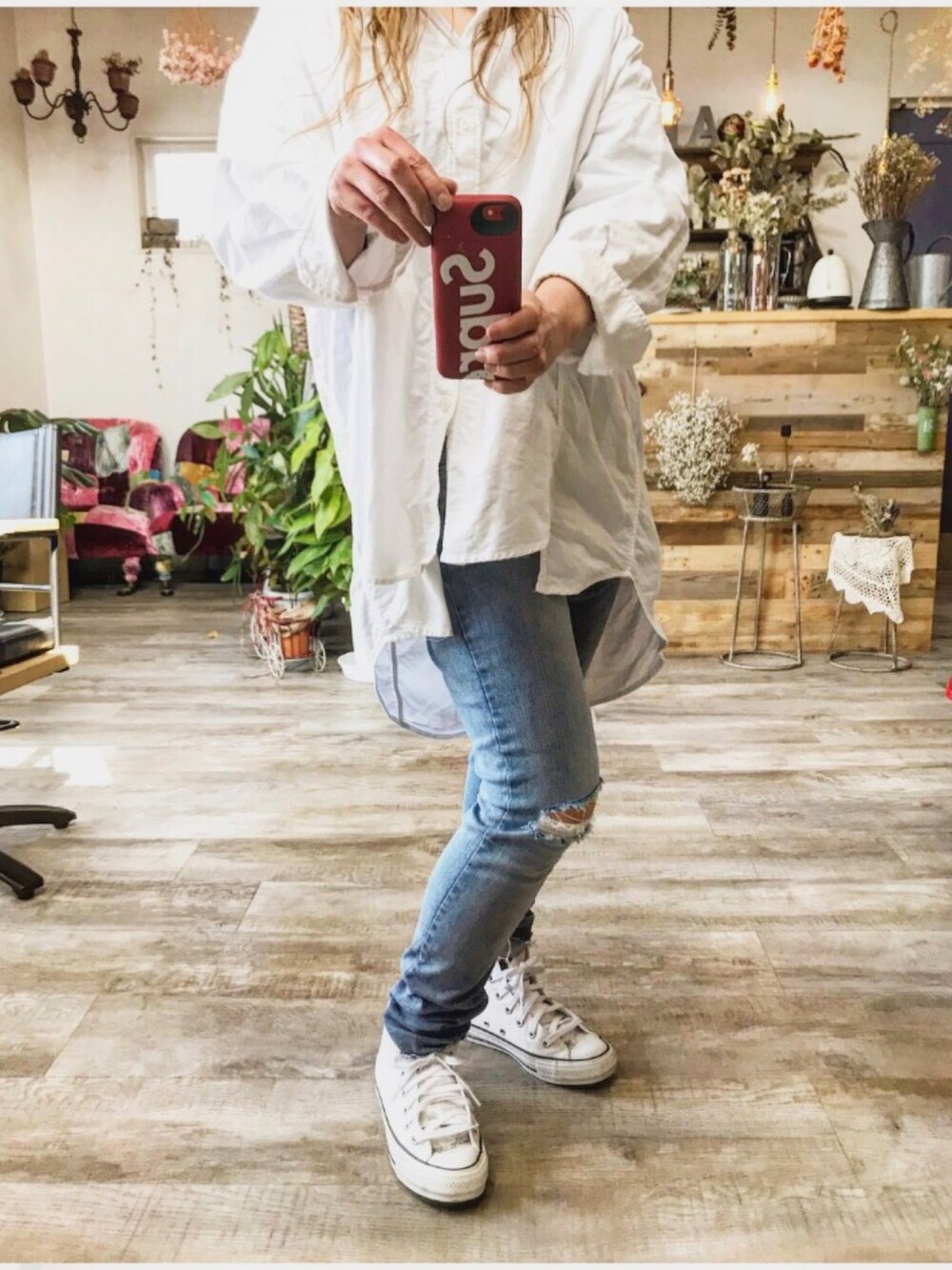 なつきのスニーカー「converse コンバース CANVAS ALL STAR COLORS HI キャンバス オールスター カラーズ ハイ 32664380 WHT/BLK」を使ったコーディネート