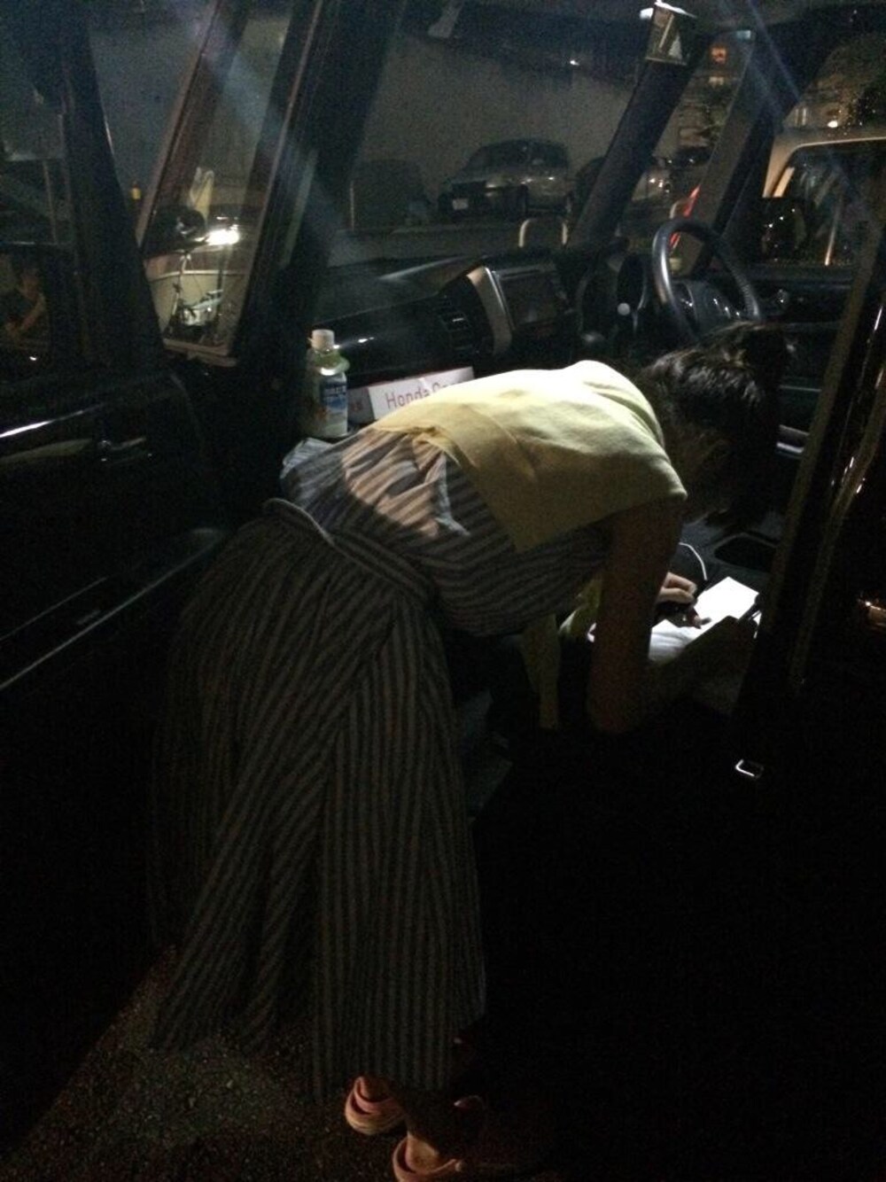 志穂ちゃんのブランドのthpry+colorのセットアップ(^O^)💓 書き物してるとこを友達に撮られた。笑 あ、足元クロックス。笑 おでかけしてたときは、白いサンダル履いてたの。